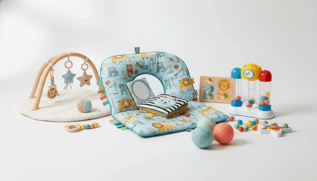 Babylegetøj er legetøj til spædbørn og småbørn, der støtter sanseudvikling, grov- og finmotorik samt tryghedsoplevelser gennem leg. I denne kategori finder du bløde bøger og rangler, sensorisk legetøj, aktivitetsstænger, babygym og små, sikre ting, der passer til de små hænder og sanser. Vælg materialer der er giftfri og let at rengøre, har sikre kanter og en robust konstruktion. Typiske typer inkluderer bløde bøger, rangler og små puslespil til de helt små samt aktivitetsstativer og musikinstrumenter. Variationer med tekstur og farvekontrast stimulerer sanserne. For mere inspiration: Ovellie og Legekammeraten.dk.