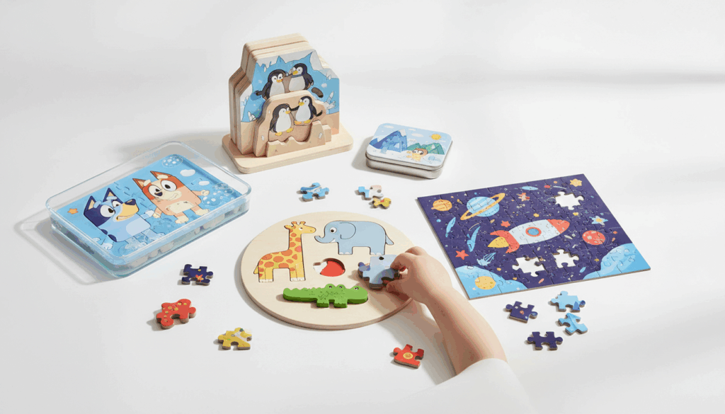 Brug dem til rolig tid derhjemme, fælles puslespilsaftener og pædagogiske aktiviteter i vuggestuen og børnehaven. Ved køb bør man tænke på alder, brikstørrelse og antal brikker, samt tema og holdbarhed, så udfordringen passer til barnet og brikkerne kan holde til gentagen leg.
