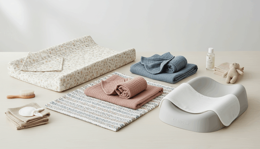 Disse produkter deler nøgleegenskaber som blødt og absorberende materiale, stabil bund og nem rengøring. 6-lags Musselin giver ekstra lunhed og skånsomhed, mens quiltede designs giver struktur og stil. Mange modeller er foldbare og rejsevenlige – perfekte til hjemmet, bil og pusletaske. Du finder eksempelvis Leander Mattya Puslepude inkl. Topper samt andre populære varianter hos Mammashop.dk og Kids-world.dk.